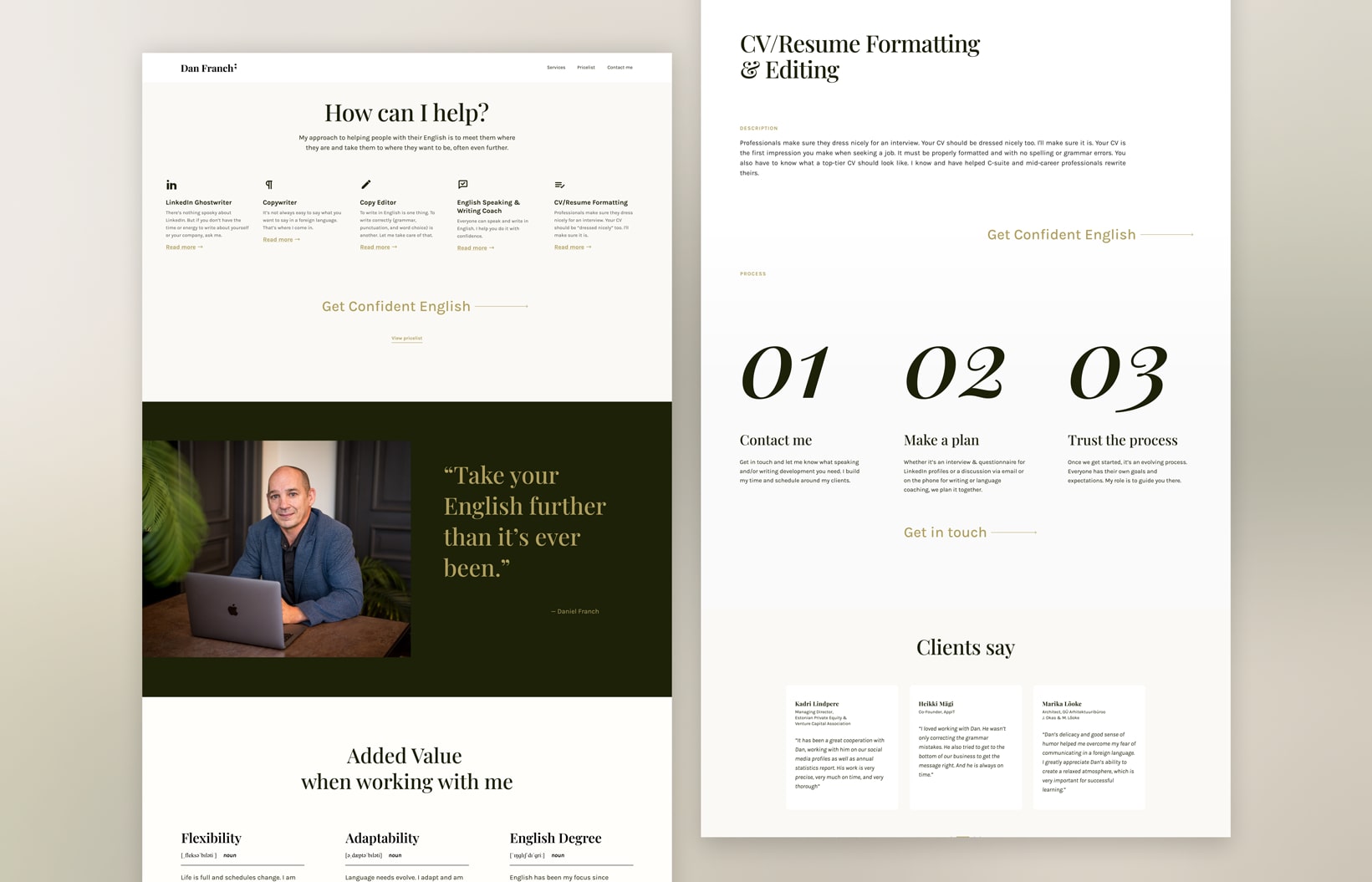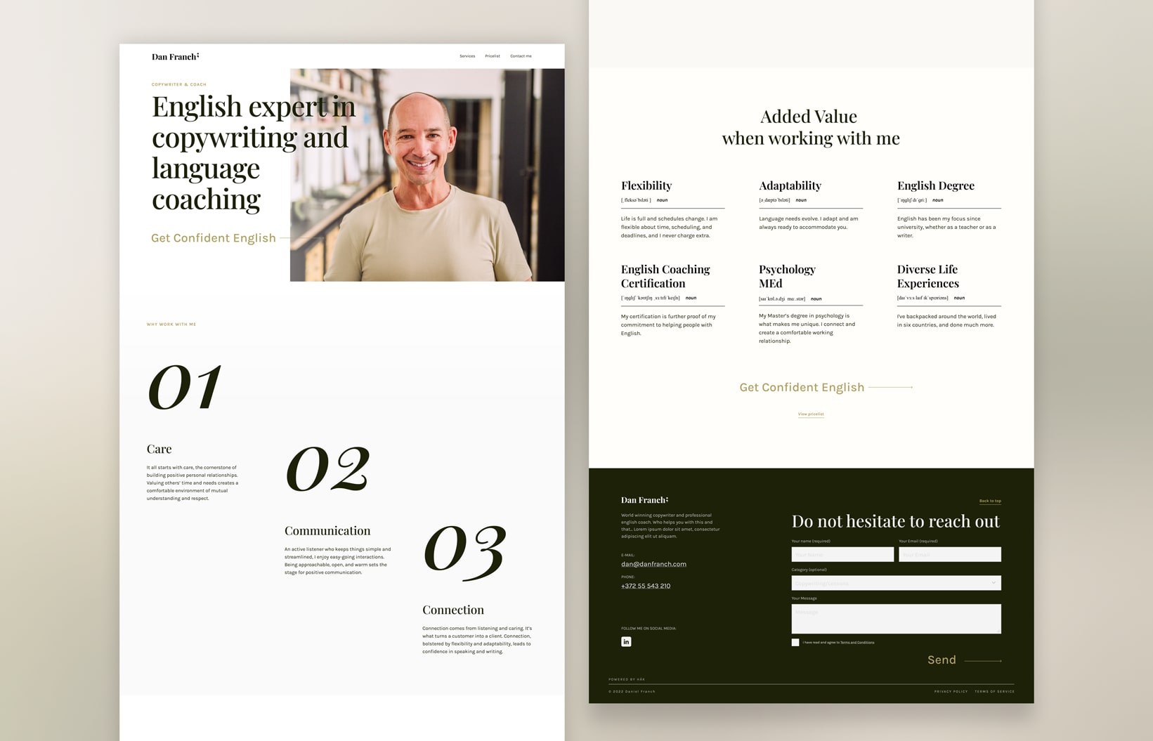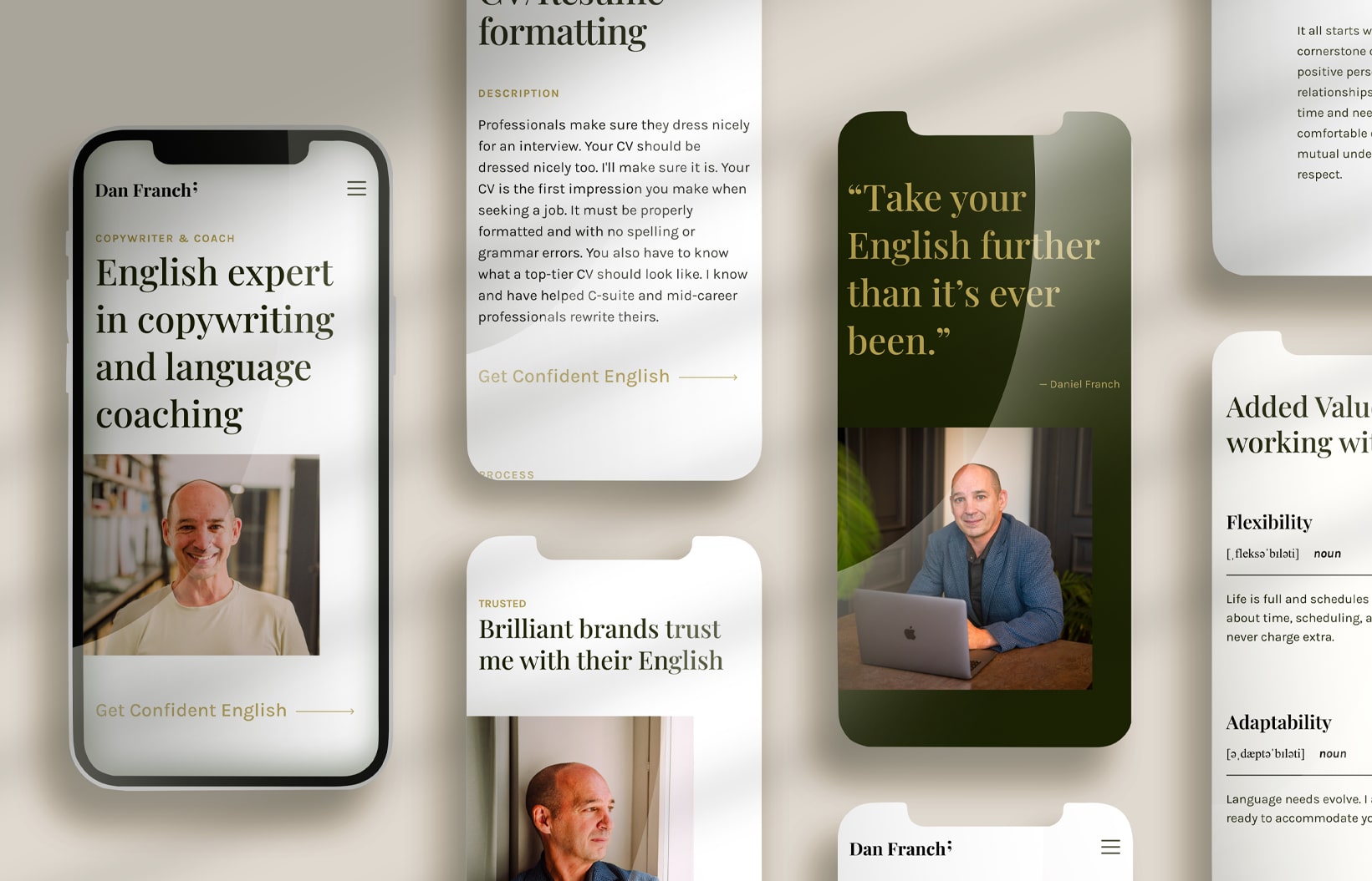 The website design is inspired by Dan’s personality. We selected calm and mature tones that also match his own nature and personality.👤