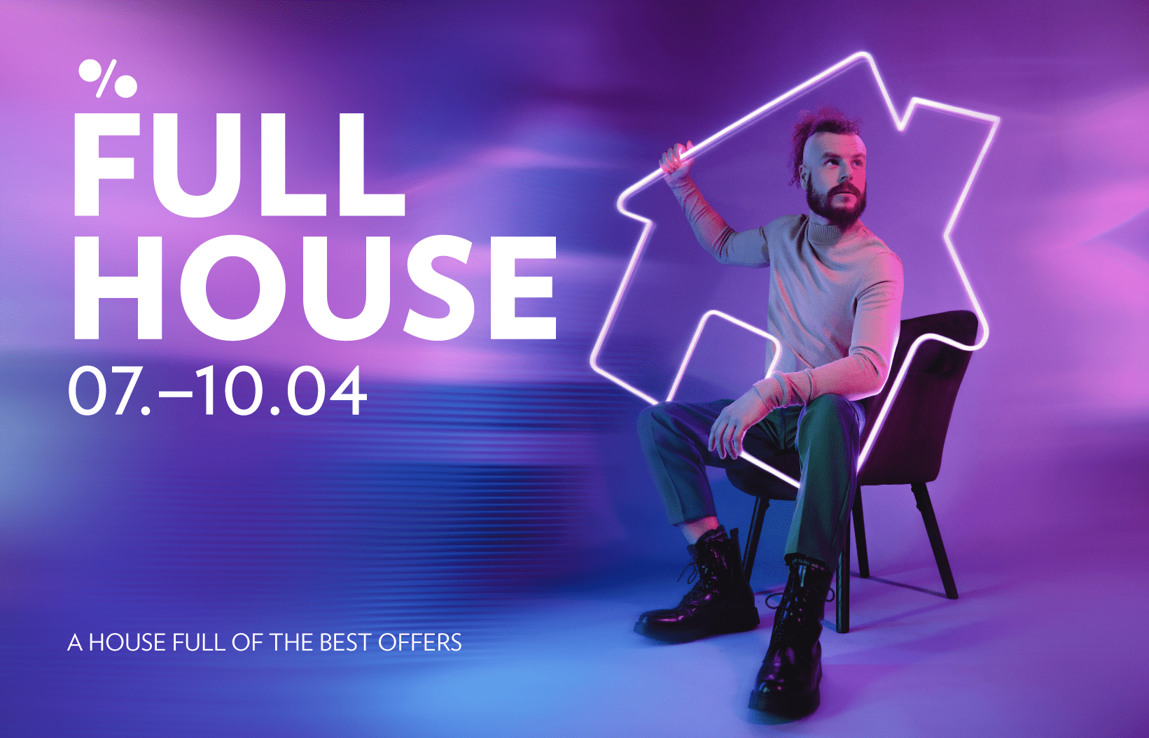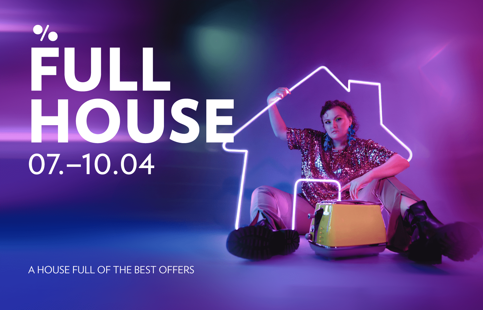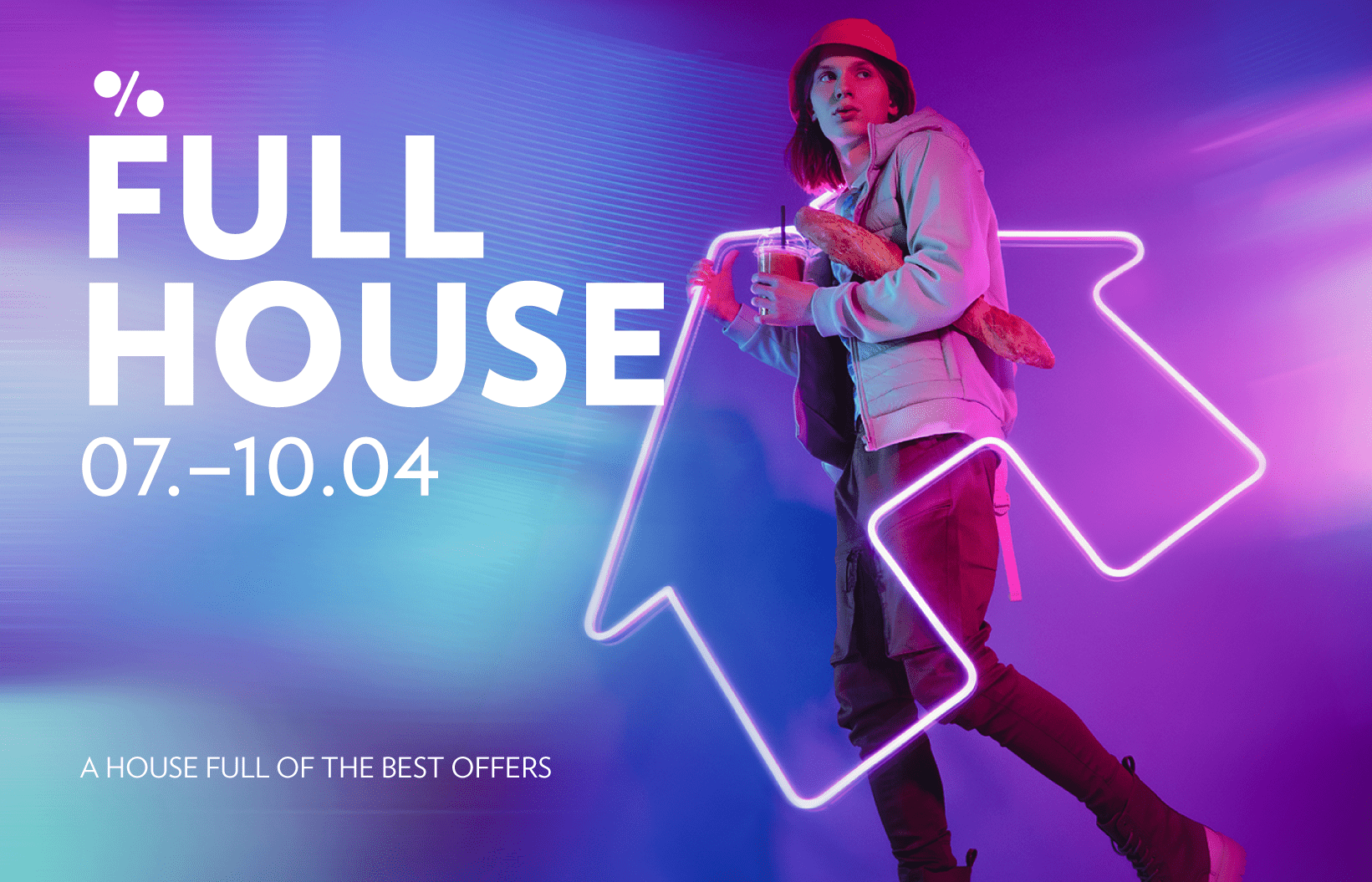Full House is the legendary Kristiine shopping centre discount campaign, in which a very large proportion of their tenants take part, offering sweet discounts in their shops. For the first time in the history of Full House, we showed a human being in the campaign visuals – it gives the campaign a human touch and also better demonstrates Kristiine shopping centre's own sense of style. In addition, our aim was to emphasise that Full House is not just about fashion, but about being able to buy products from many different categories in one place and at a good price. To this end, a series of four visuals was created for the Full House campaign, featuring different-looking people posing with products from different categories, but united by the one and only – a house full of the best offers.