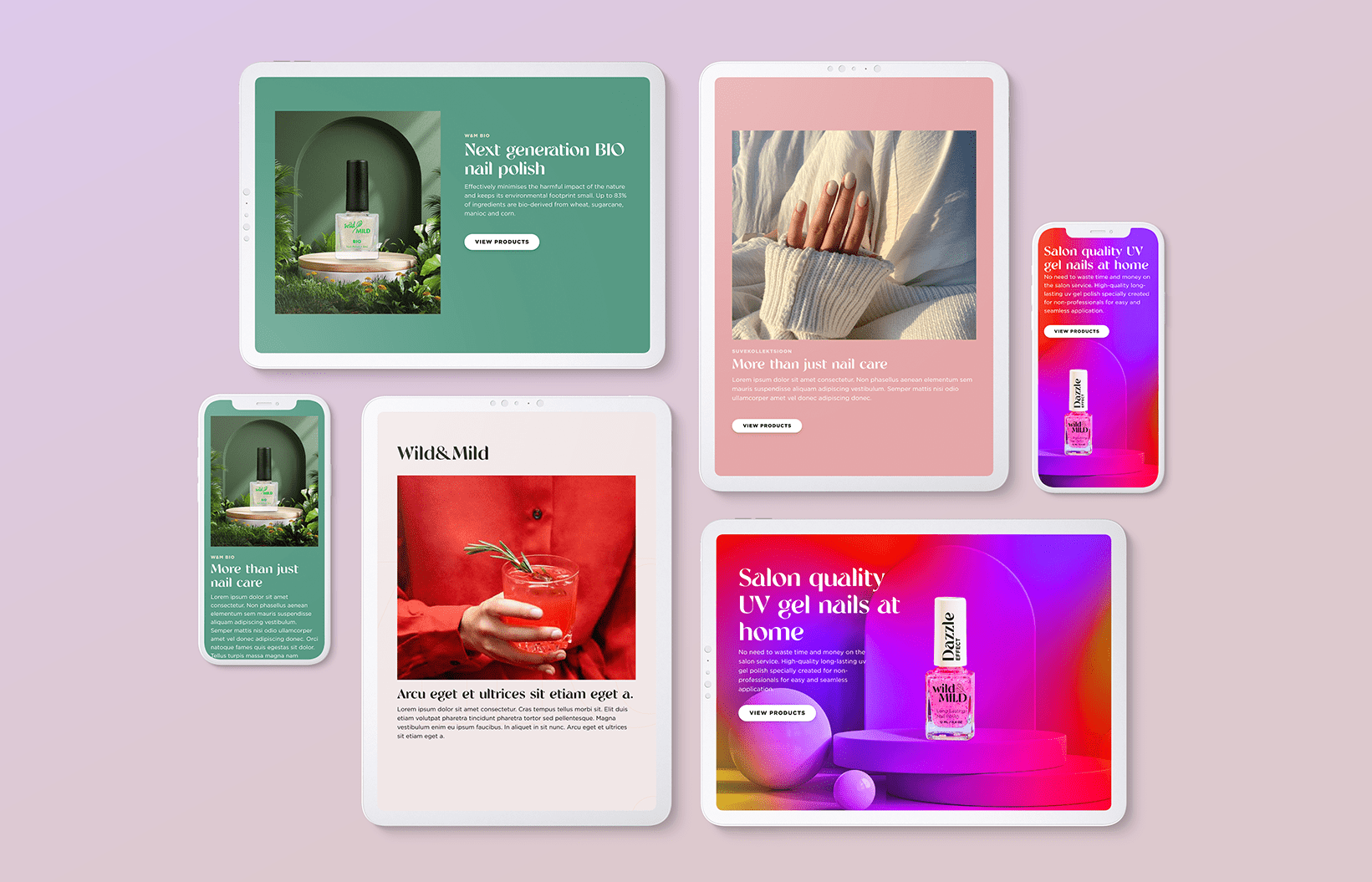 Why go to a salon, when you can also create salon-level results at home with affordable and high-quality tools? In order to encourage the consumer to step into the exciting world of nail art, we updated the Wild&Mild website and e-store with colourful and dynamic solutions.